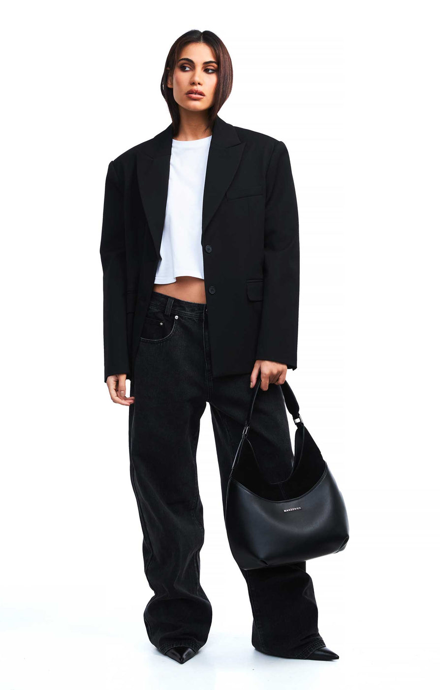 The Isla Blazer Black by Nakedvice is a beautifully crafted oversized fit, featuring a double button closure and lining. Seamlessly transition from day to night in this essential wardrobe item. Designed for an oversized fit, with the option to size down for a closer fit.